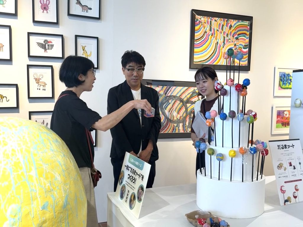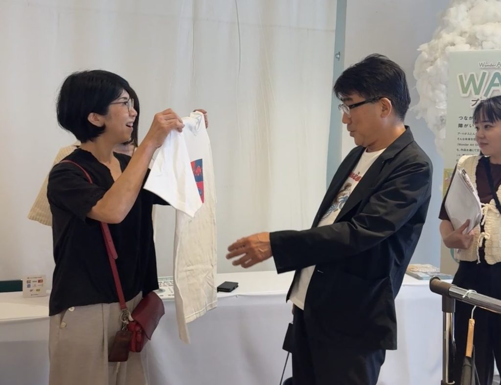 会場に並ぶ障がい者アート作品やオリジナルグッズを一つひとつ丁寧に見て回り、スタッフに温かい言葉をかけてくださる姿が印象的でした。