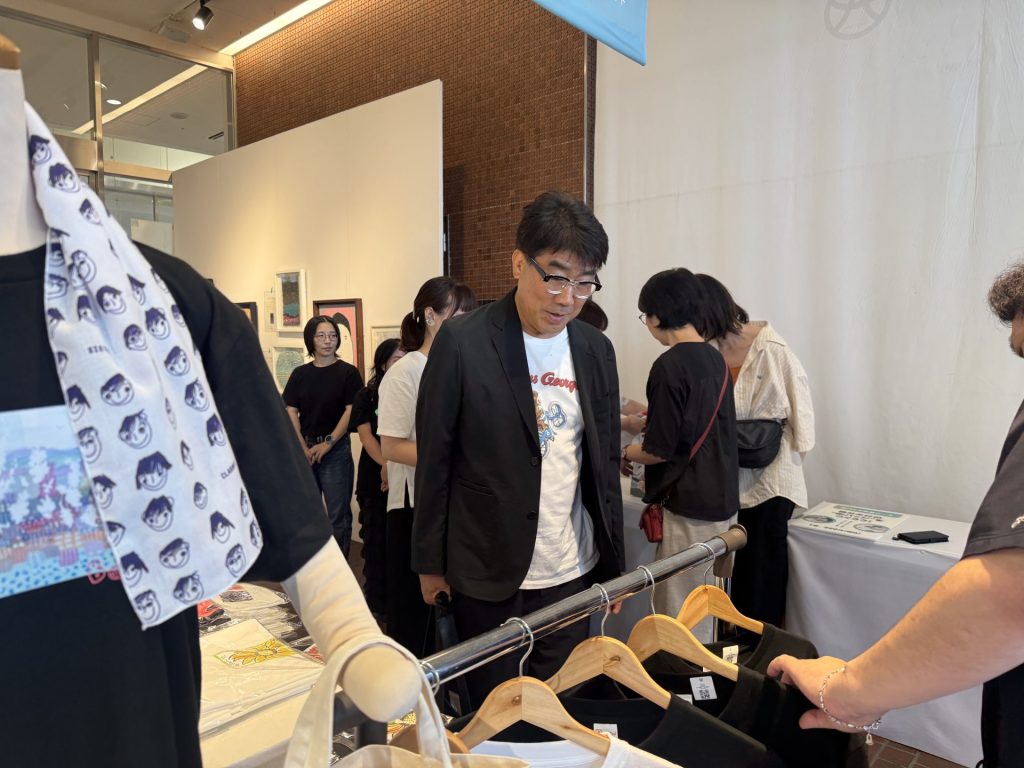 今回、亀の作品をモチーフにしたオリジナルTシャツを記念にプレゼント。亀田さんは「作品の持つエネルギーや作り手の思いが伝わってくる」と感想を寄せてくださり、スタッフ一同とても励みになりました。